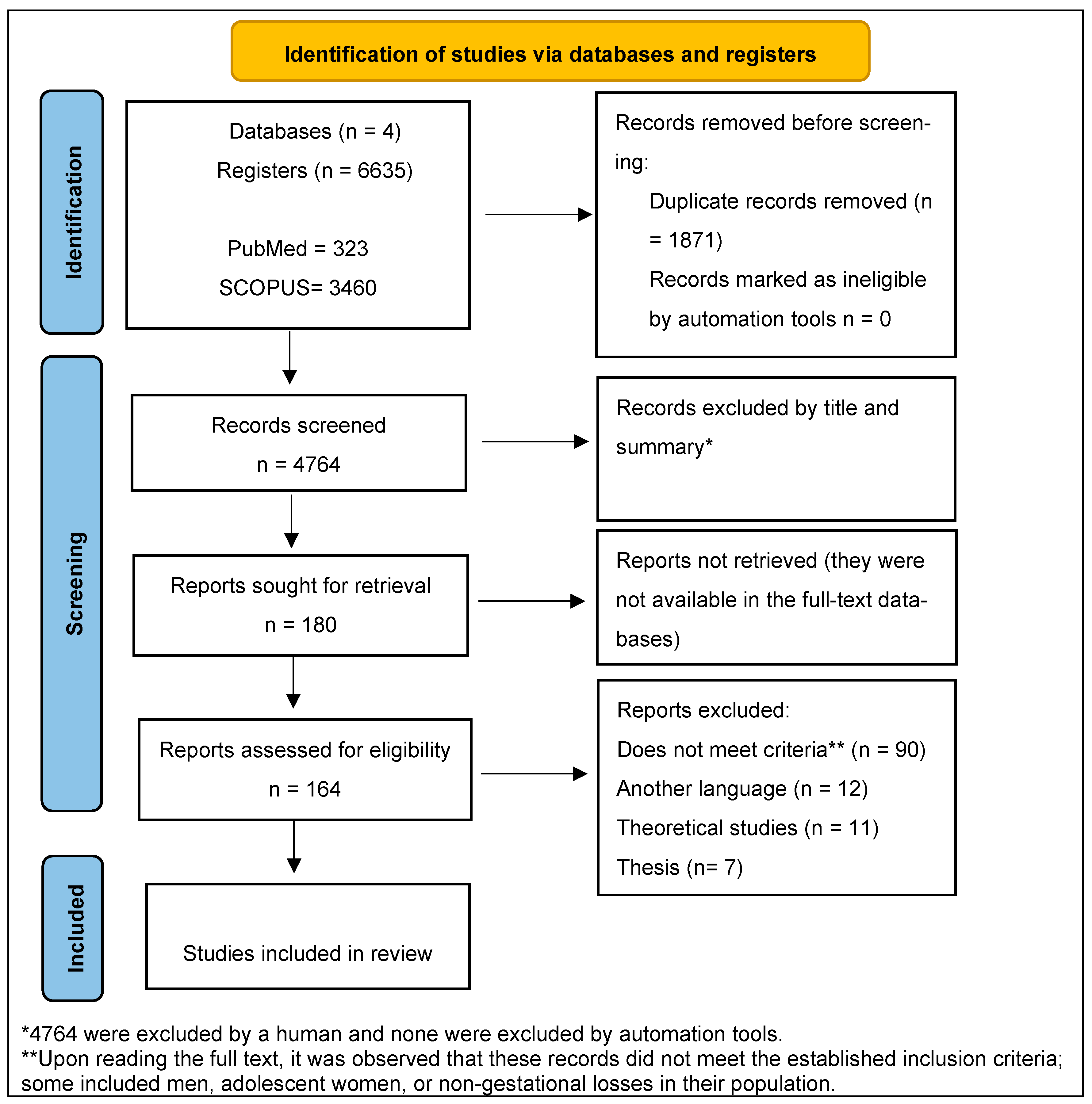 Mota-González C, Sánchez C, Carreño J, Jímenez-García CY. Psychosocial Risk Factors for Complicated Perinatal Grief in Adult Women with Pregnancy Loss: A Systematic Review. Women. 2025; 5(4):50. https://doi.org/10.3390/women5040050
