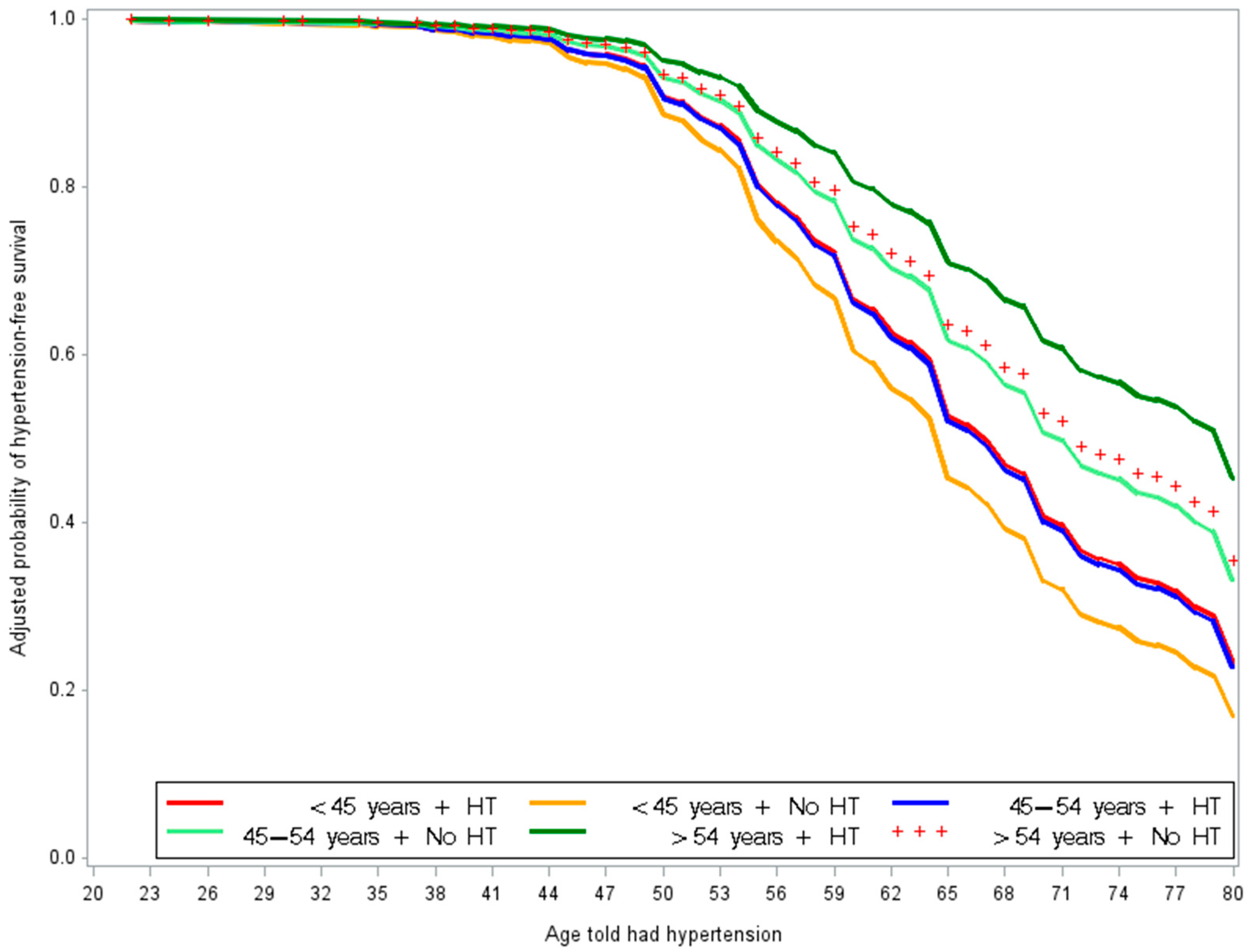 | Age at hypertension | 57.9 (0.42) | 54.7 (0.65) | 54.4 (0.55) | <0.001 |