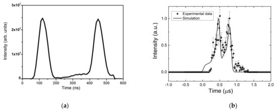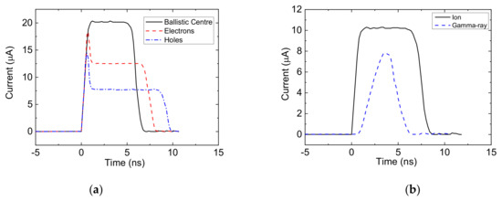 Last, but not least, we point out the intrinsic capability of diamond to discriminate the type of the impinging radiation such as charged particles from X-rays or gamma-rays. This is possible thanks to the shape of the electrical pulses produced inside the detector [], which can be discriminated operating in pulse shape mode [,,] (see Section 3.6).