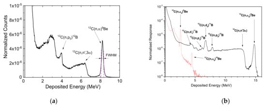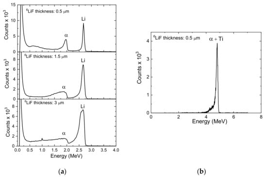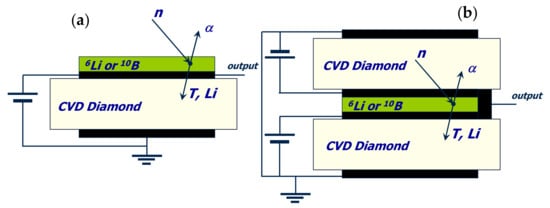 - Almaviva, S.; Angelone, M.; Marinelli, M.; Milani, E.; Pillon, M.; Prestopino, G.; Tucciarone, A.; Verona, C.; Rinati, G.V. Characterization of damage induced by heavy neutron irradiation on multilayered L6iF-single crystal chemical vapor deposition diamond detectors. J. Appl. Phys. 2009, 106, 073501. [Google Scholar] [CrossRef]