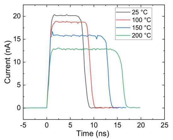 - Angelone, M.; Cesaroni, S.; Loreti, S.; Pagano, G.; Pillon, M. High temperature response of a single crystal CVD diamond detector operated in current mode. Nucl. Instrum. Methods Phys. Res. Sect. A Accel. Spectrometers Detect. Assoc. Equip. 2019, 943. [Google Scholar] [CrossRef]