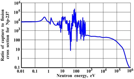 As is seen, it is desirable that the energy spectrum of incident neutrons would be, at least, well below 100 keV. Within this energy range, 237Np will mainly capture neutrons with a minimal rate of useless fissions. The lower neutron energies can open a favorable tendency in growth of capture-to-fission ratio, up to four orders of magnitude in a thermal energy point (Figure 4).
