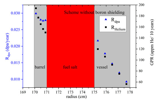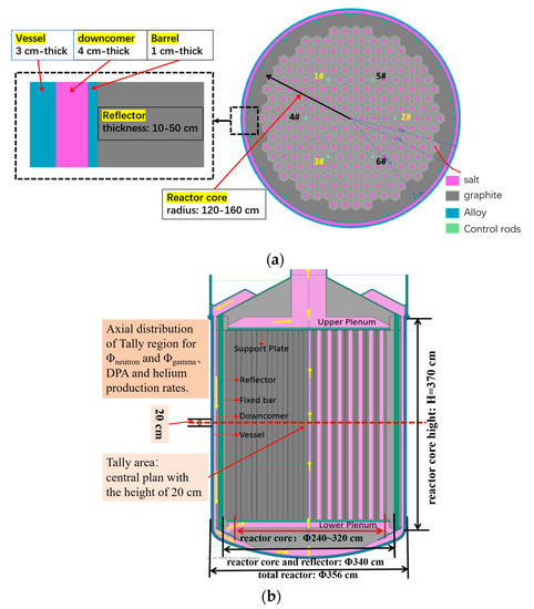 - Merk, B.; Konheiser, J. Neutron shielding studies on an advanced molten salt fast reactor design. Ann. Nucl. Energy 2014, 64, 441–448. [Google Scholar] [CrossRef]