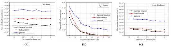 3.2. The Influence of Reflector Thickness on Flux Distribution