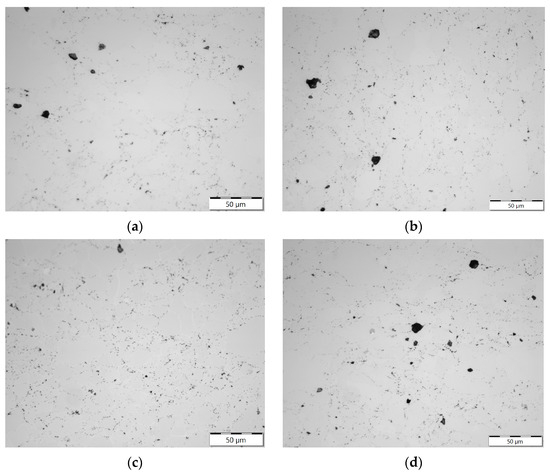 Figure 4 shows optical micrographs of irradiated Be fragments after annealing at temperatures of 473 K (a), 573 K (b), 673 K (c), 773 K (d) for 5 h. The microstructure images are very similar to the microstructure of the as-received state shown in Figure 3d, indicating that the microstructure did not change much during the annealing process up to a temperature of 773 K.