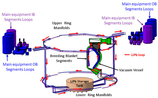 - Mozzillo, R.; Utili, M.; Venturini, A.; Tincani, A.; Gliss, C. Integration of LiPb loops for WCLL BB of European DEMO. Fusion Eng. Des. 2021, 167, 112379. [Google Scholar] [CrossRef]