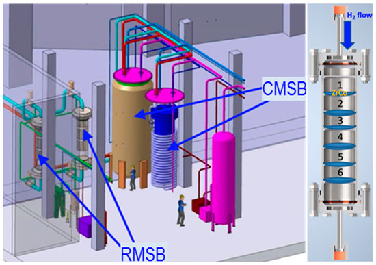 - Utili, M.; Alberghi, C.; Candido, L.; Papa, F.; Tarantino, M.; Venturini, A. TRIEX-II: An experimental facility for the characterization of the tritium extraction unit of the WCLL blanket of ITER and DEMO fusion reactors. Nucl. Fusion 2022, 62, 066036. [Google Scholar] [CrossRef]
