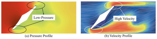 High-velocity and low-pressure regions are observed on both sides of the valve body, transitioning the high-pressure flow downstream. In every scenario, the high-pressure zone is formed at the same position (upstream/front of the valve body).