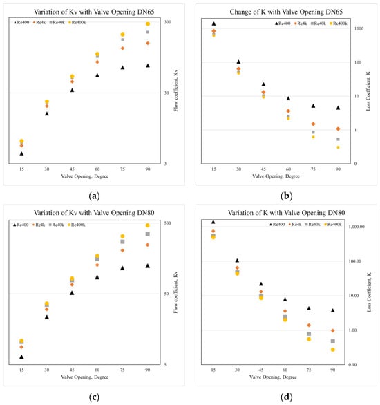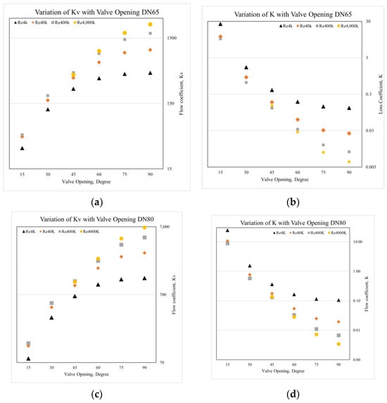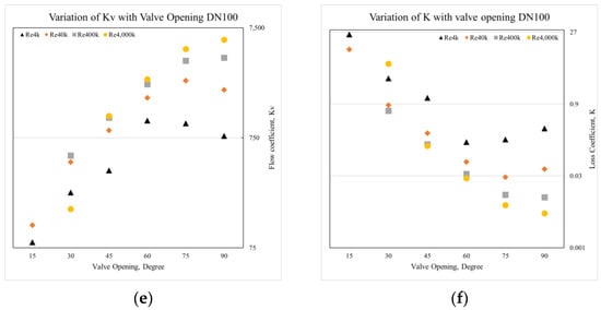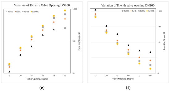 Figure 10b,d,f show the parametric behaviors of the loss coefficient with respect to valve positions.