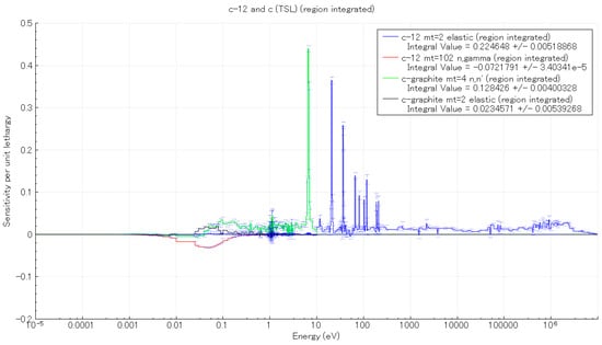 Energy-dependent sensitivities of the keff to C-12 and S (α,β) of C cross-sections (JENDL-5).