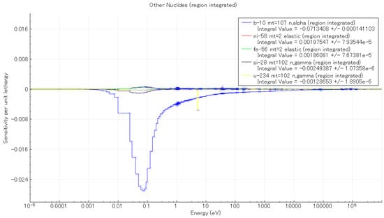 Energy-dependent sensitivities of the keff to B-10, Si-28, Ni-58, Fe-56, and U-234 cross-sections (JENDL-5).