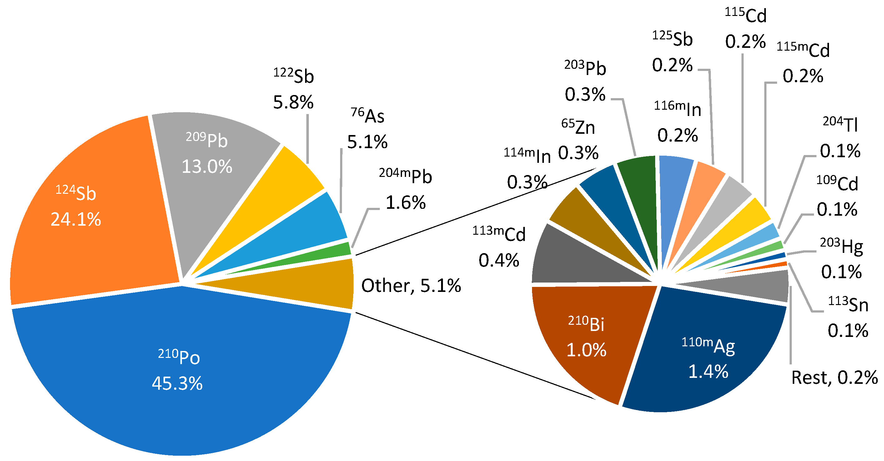 210Po alone accounts for 45.3% of the total dose impact, underscoring its dominant role in radioprotection assessments, particularly during maintenance and decontamination operations.