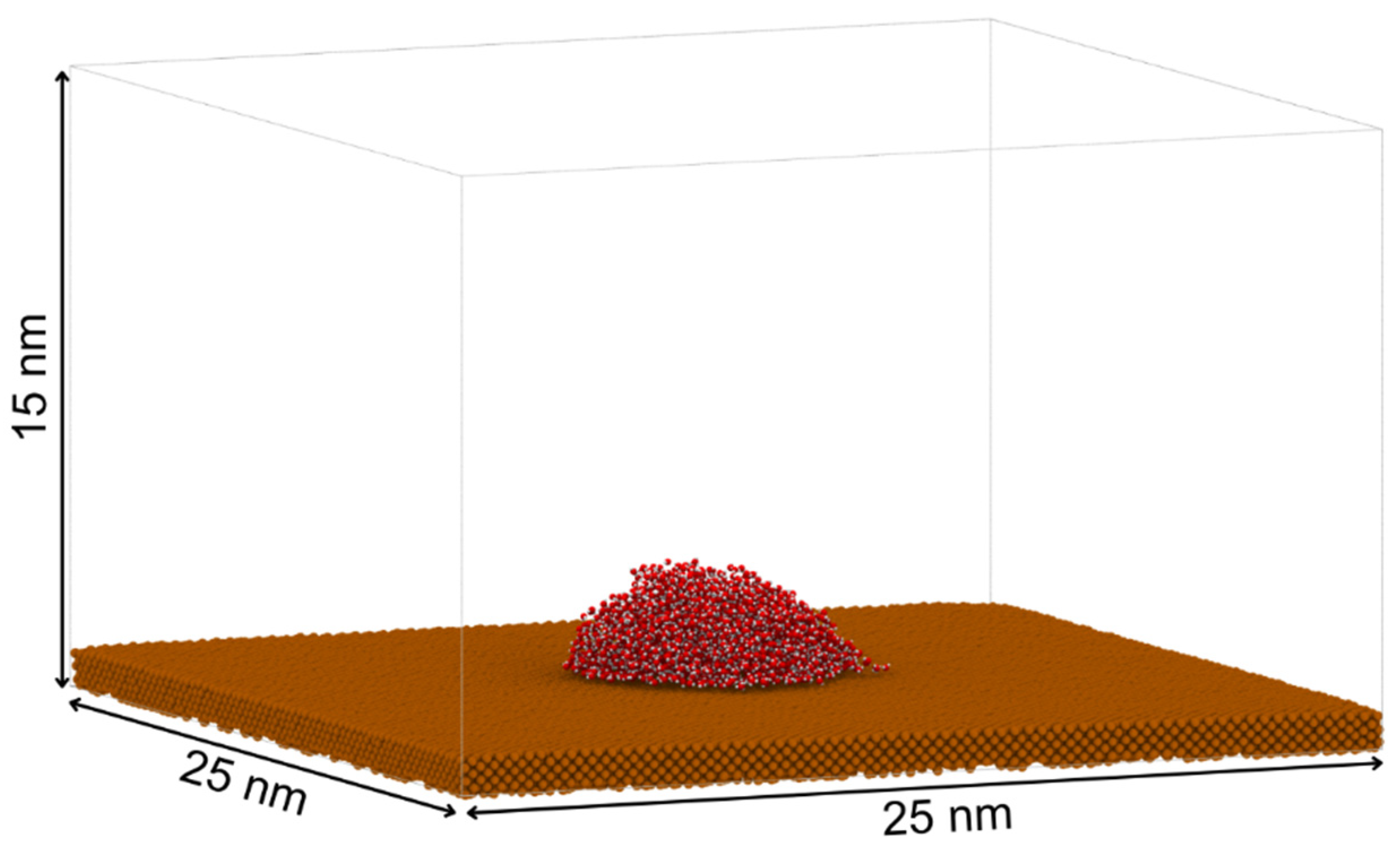 - Thompson, A.P.; Aktulga, H.M.; Berger, R.; Bolintineanu, D.S.; Brown, W.M.; Crozier, P.S.; In’t Veld, P.J.; Kohlmeyer, A.; Moore, S.G.; Nguyen, T.D. LAMMPS-a Flexible Simulation Tool for Particle-Based Materials Modeling at the Atomic, Meso, and Continuum Scales. Comput. Phys. Commun. 2022, 271, 108171. [Google Scholar] [CrossRef]