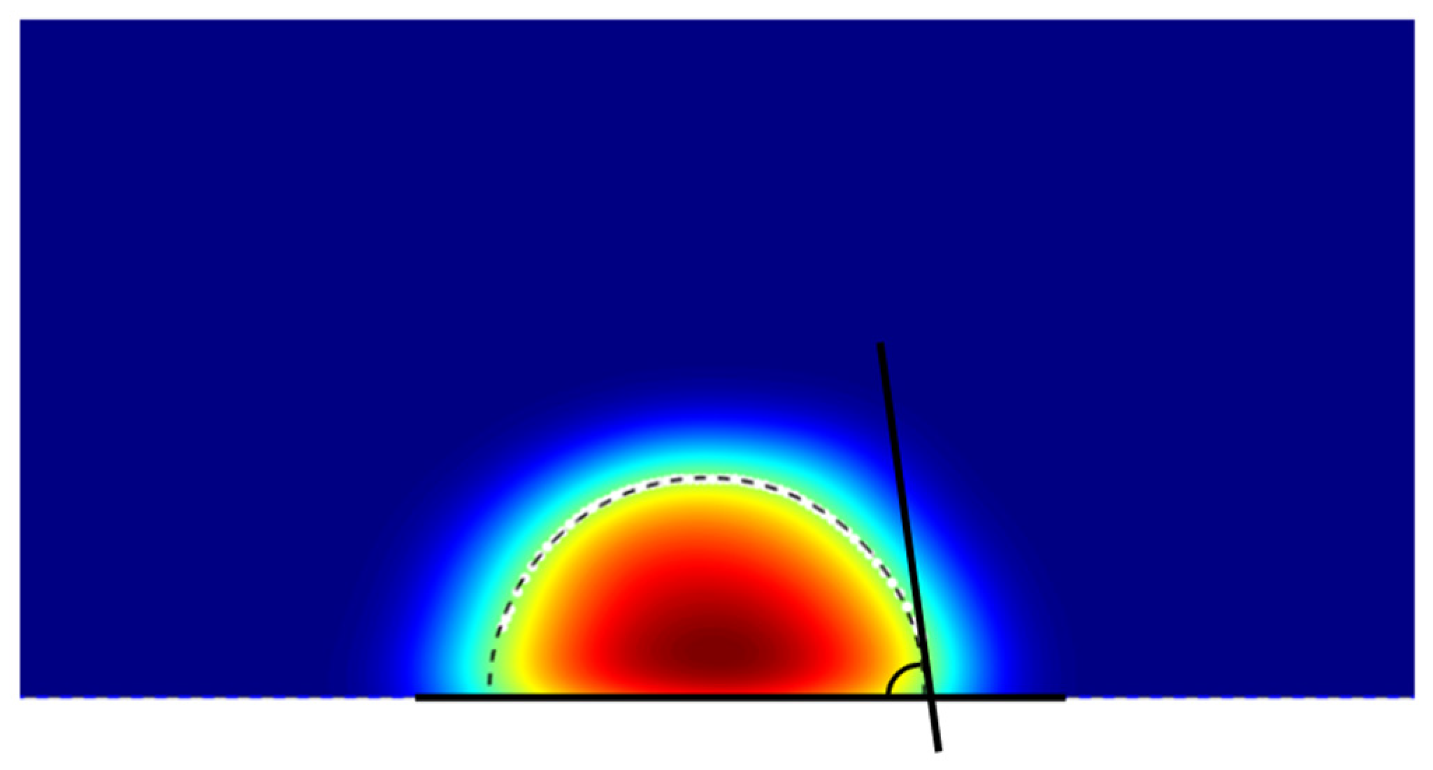 - Yd, S.; Maroo, S.C. A New Algorithm for Contact Angle Estimation in Molecular Dynamics Simulations. In Proceedings of the ASME 2015 13th International Conference on Nanochannels, Microchannels, and Minichannels, San Francisco, CA, USA, 6–9 July 2015. [Google Scholar]