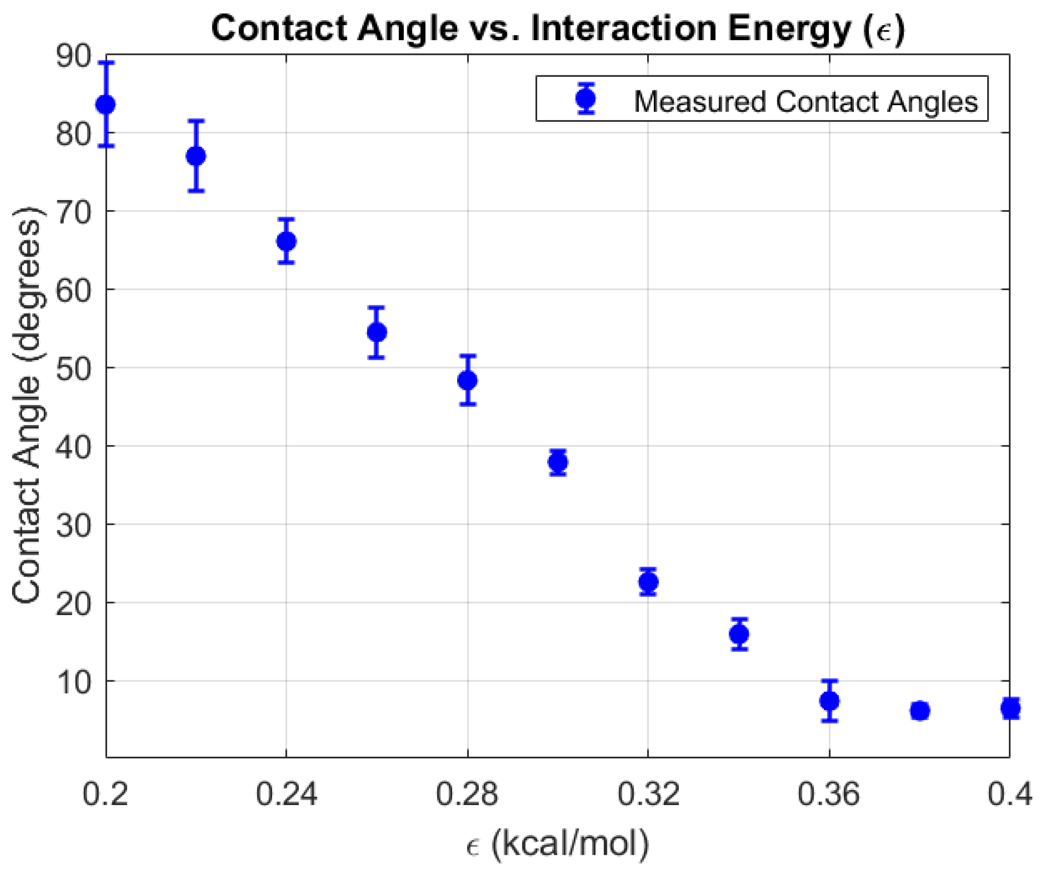 | Eps (kcal/mol) | Contact Angle (°) | Std. Dev. (°) | Experimental WCA (°) |