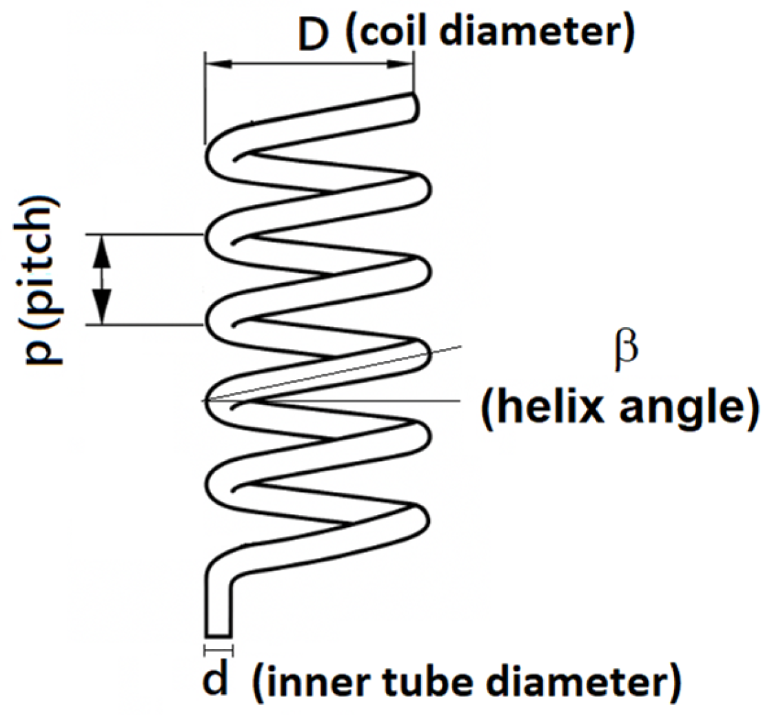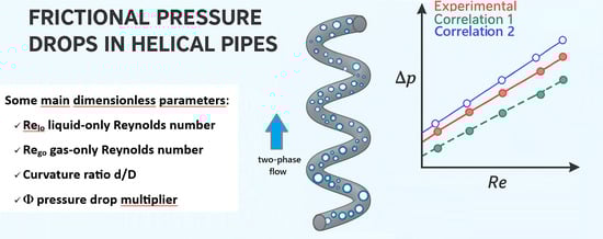 - Ferraris, D.L.; Marcel, C.P. Two-phase flow frictional pressure drop prediction in helical coiled tubes. Int. J. Heat Mass Transf. 2020, 162, 120264. [Google Scholar] [CrossRef]