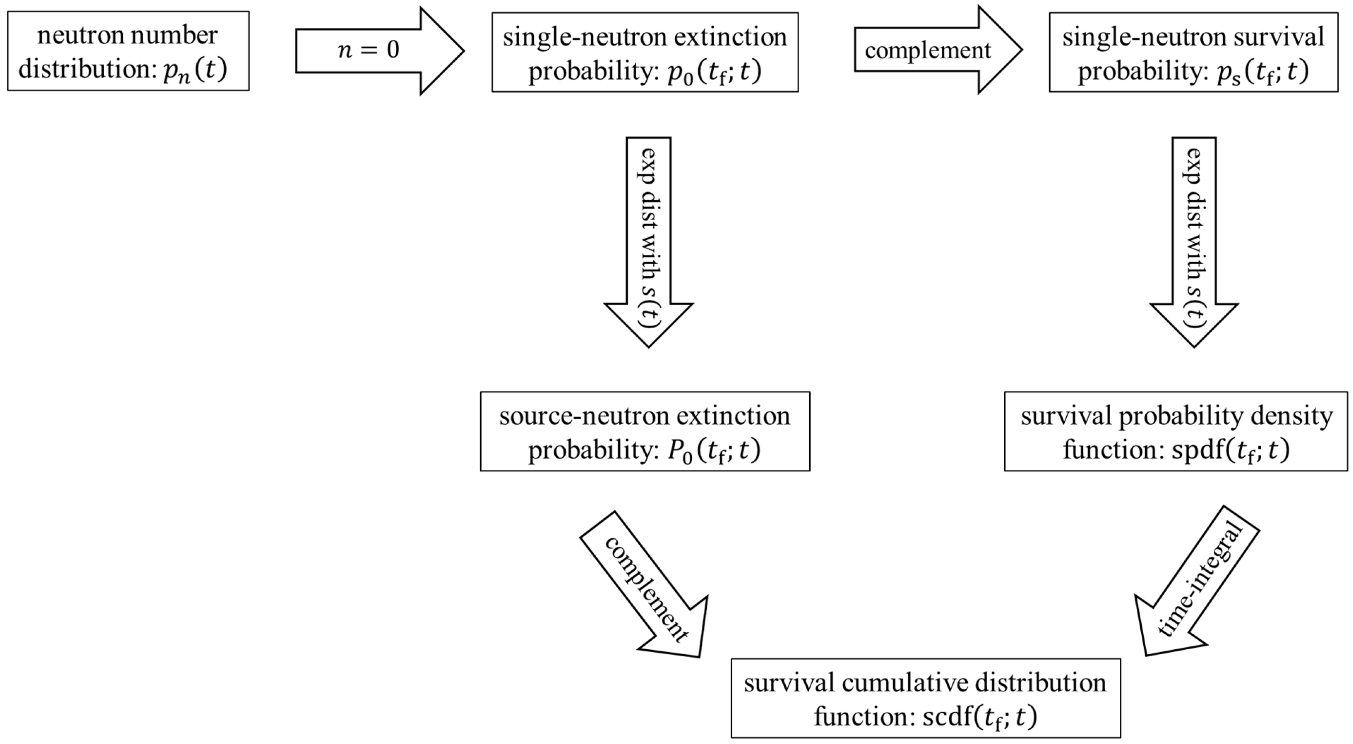 | probability that no fission chains surviving to tf are sponsored by s at or before t | dimensionless | |