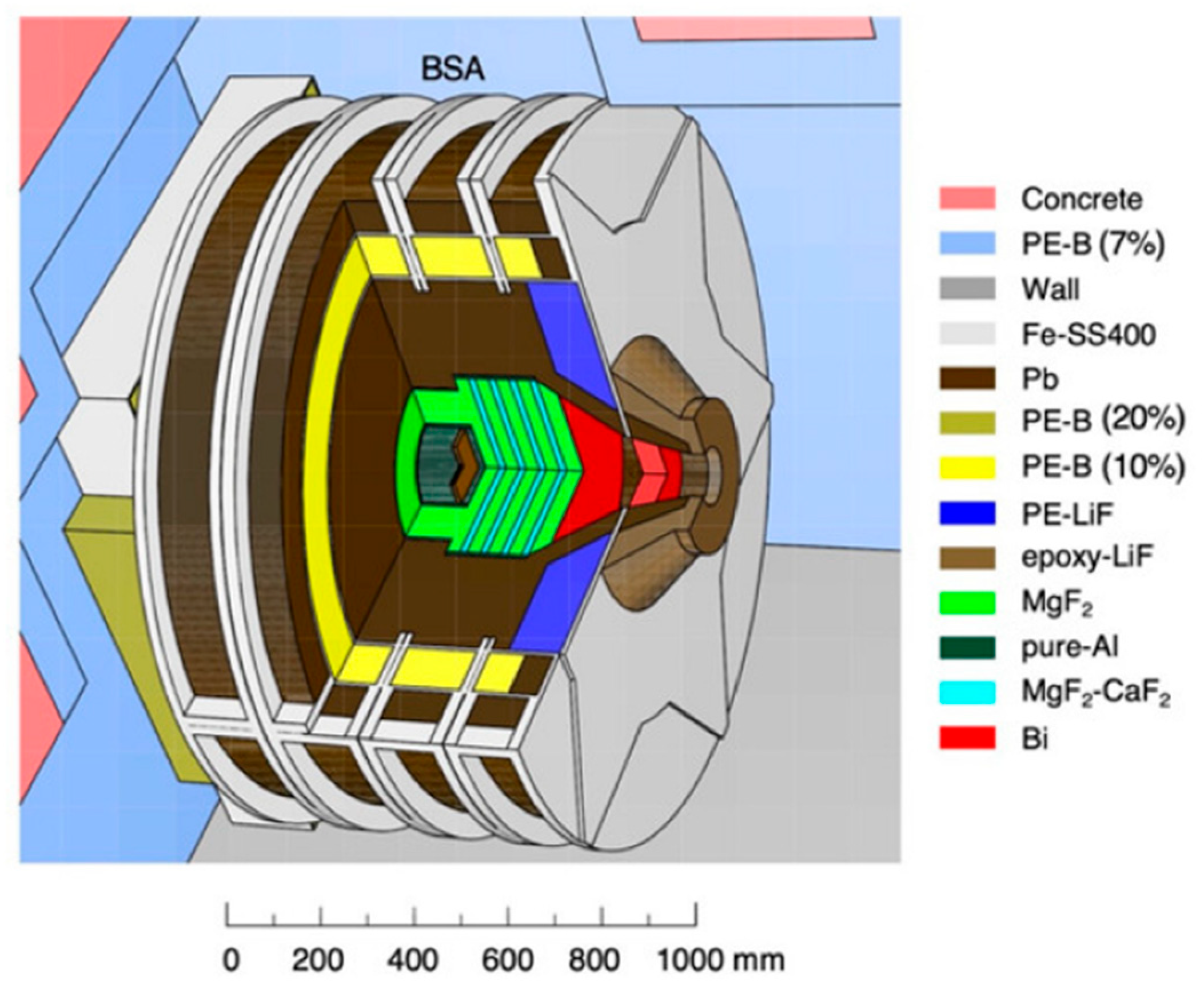- Schmidt, N.S.; Shabani, D.; Li, J.; Zakalek, P.; Mauerhofer, E.; Dawidowski, J.; Gutberlet, T. Development of an epithermal and fast neutron target station for the High Brilliance Neutron Source. Eur. Phys. J. Plus 2025, 140, 171. [Google Scholar] [CrossRef]