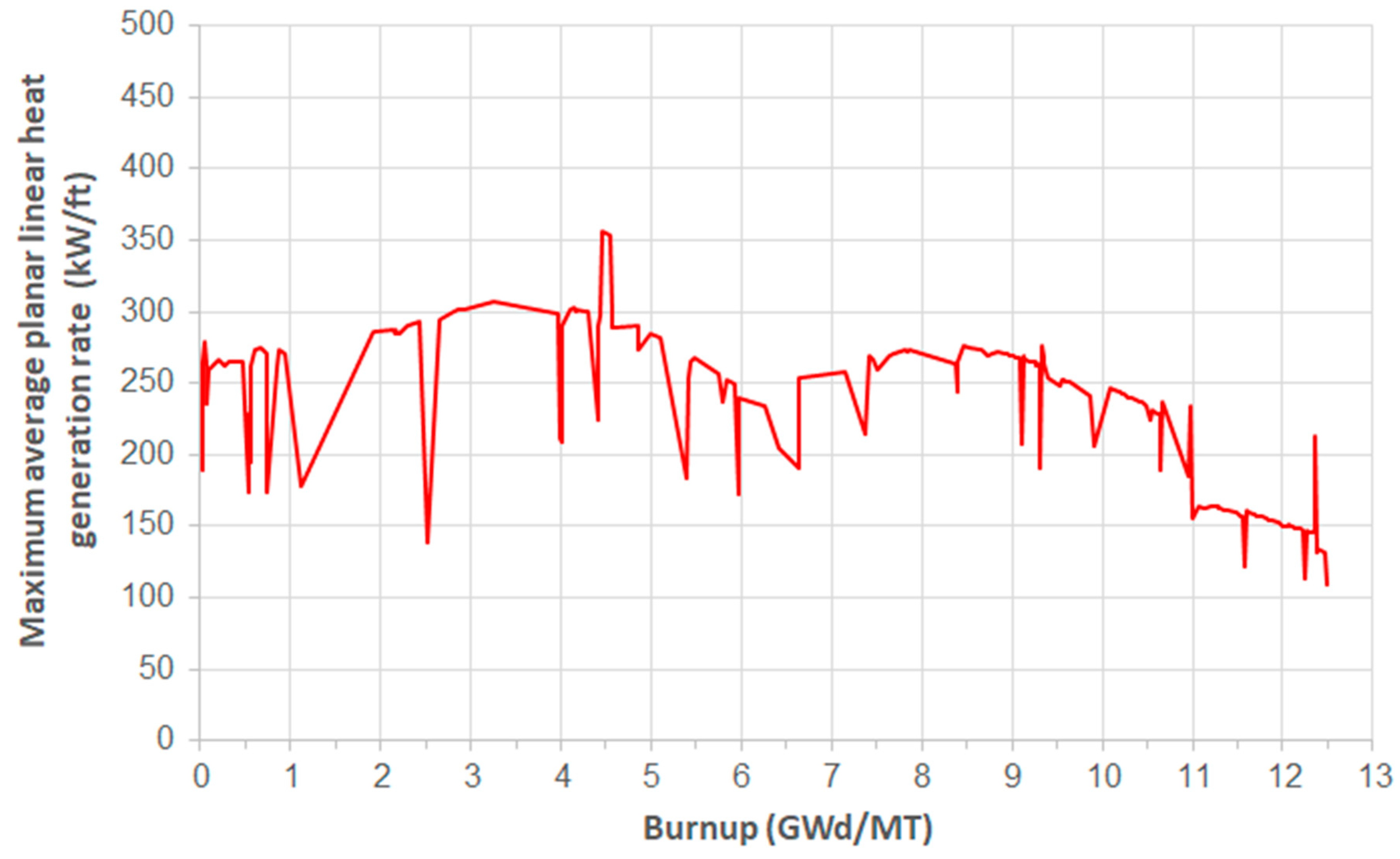 The maximum average linear heat generation rate is another safety limit in reactor core operation, ensuring fuel integrity during a loss-of-coolant accident or a design-basis accident. It depends on specific reactor operating conditions; in this case, it must be below 400 kW/ft.