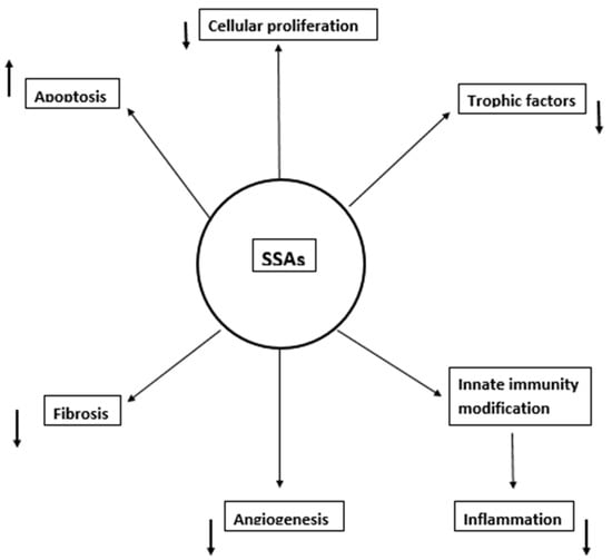 - Dasgupta, P. Somatostatin analogues: Multiple roles in cellular proliferation, neoplasia, and angiogenesis. Pharmacol. Ther. 2004, 102, 61–85. [Google Scholar] [CrossRef] [PubMed]