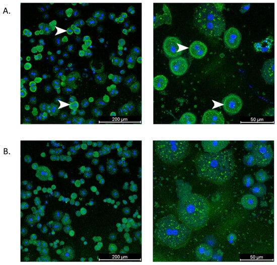 (A) Representative low- and high-magnification images of 24 h cultured primary hepatocytes (n = 1), and white arrows indicate membrane staining after exposure to Aβ40 for 2 h at 4 °C and stained with 1:1000 anti-Aβ1−16 clone 6E10. (B) Representative low- and high-magnification images of 24 h cultured primary hepatocytes (n = 1) without exposure to Aβ40 stained with 1:1000 anti-Aβ1−16 clone 6E10.