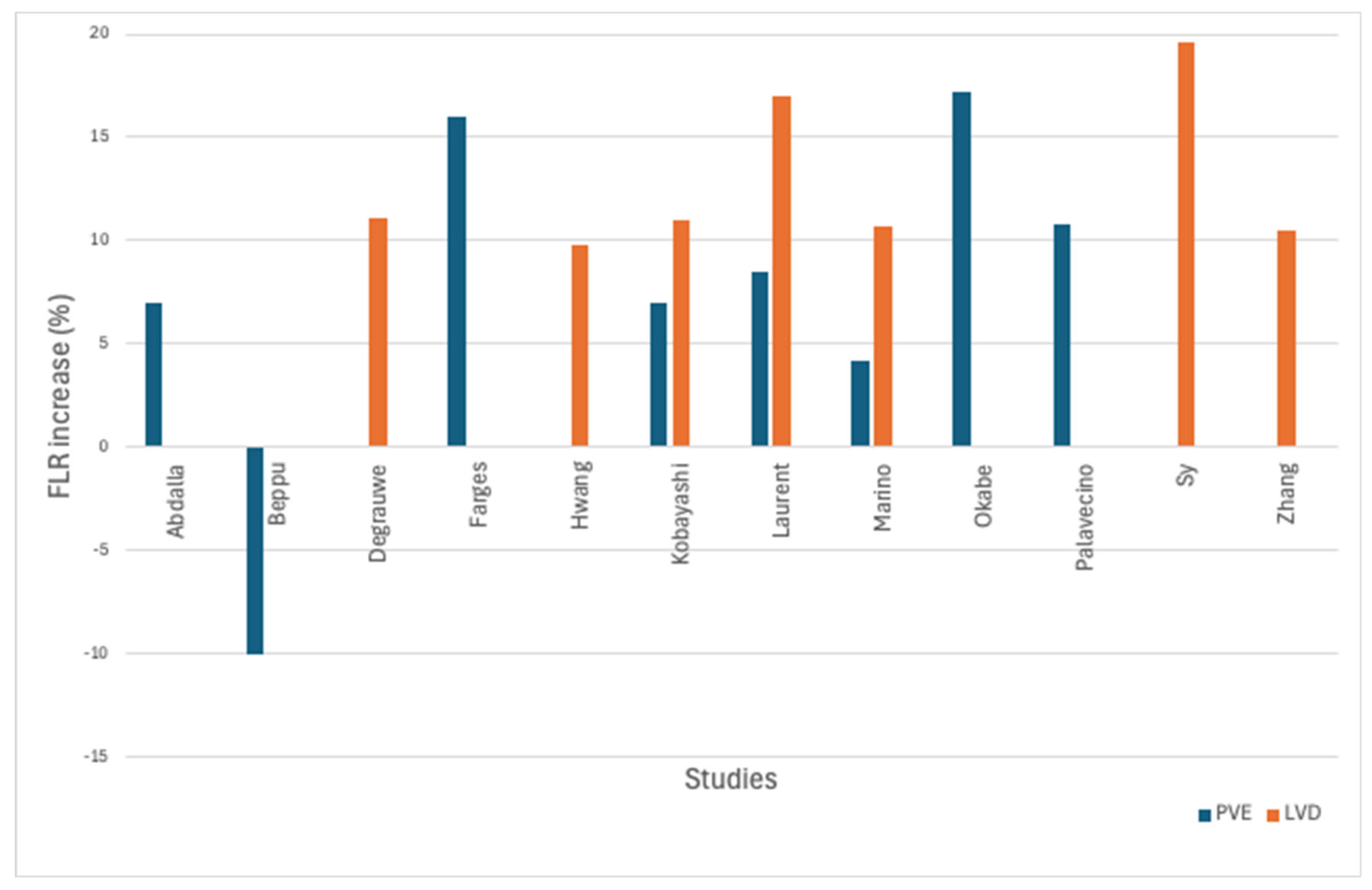 Author | Patient Groups | FLR at Presentation (%), ± SD (or Range) | FLR Preoperatively (%), ± SD (or Range) | FLR Increase (%), Mean ± SD |