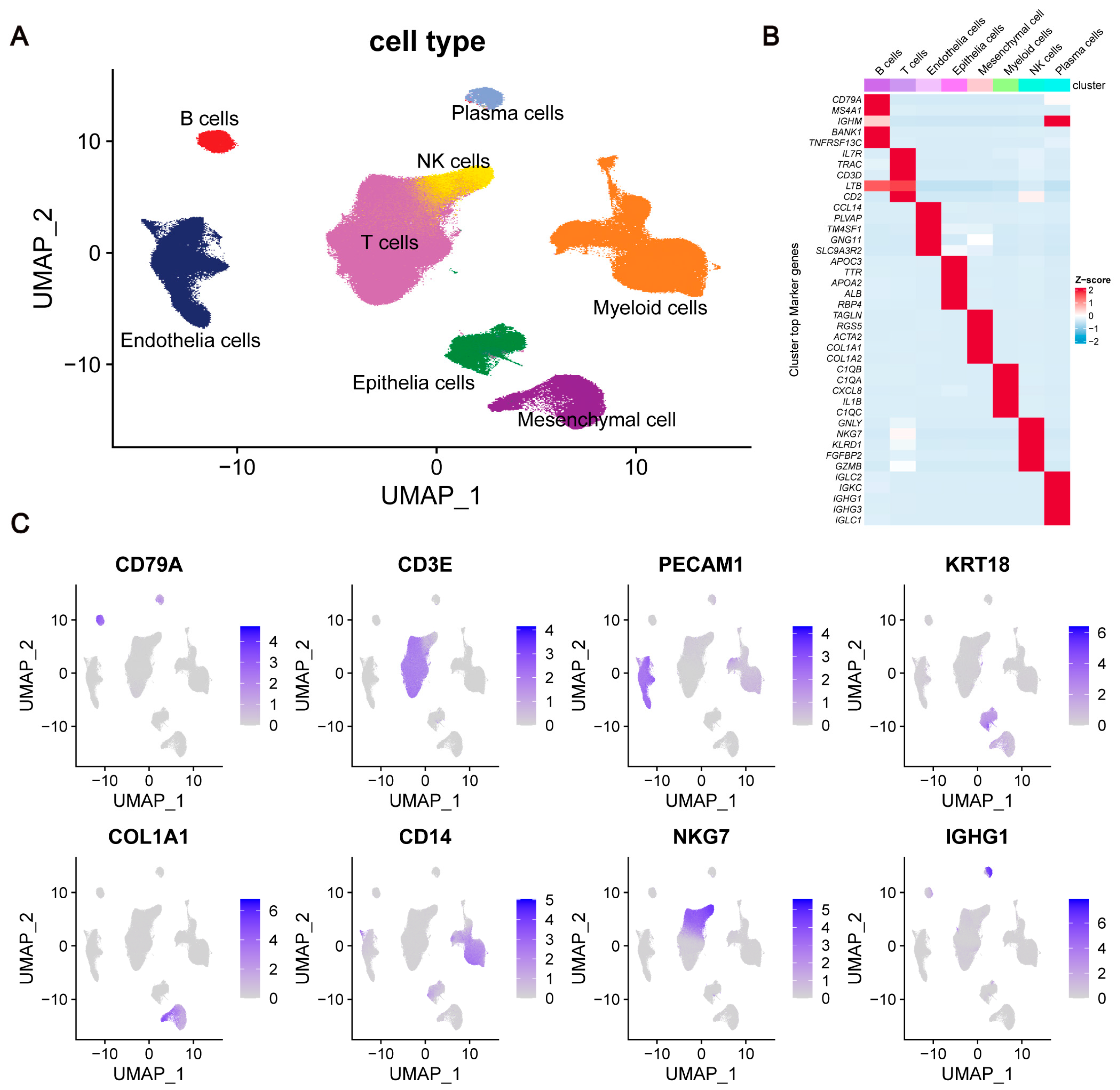 n = 8186), plasma cells (marked by IGKC, IGHG1,