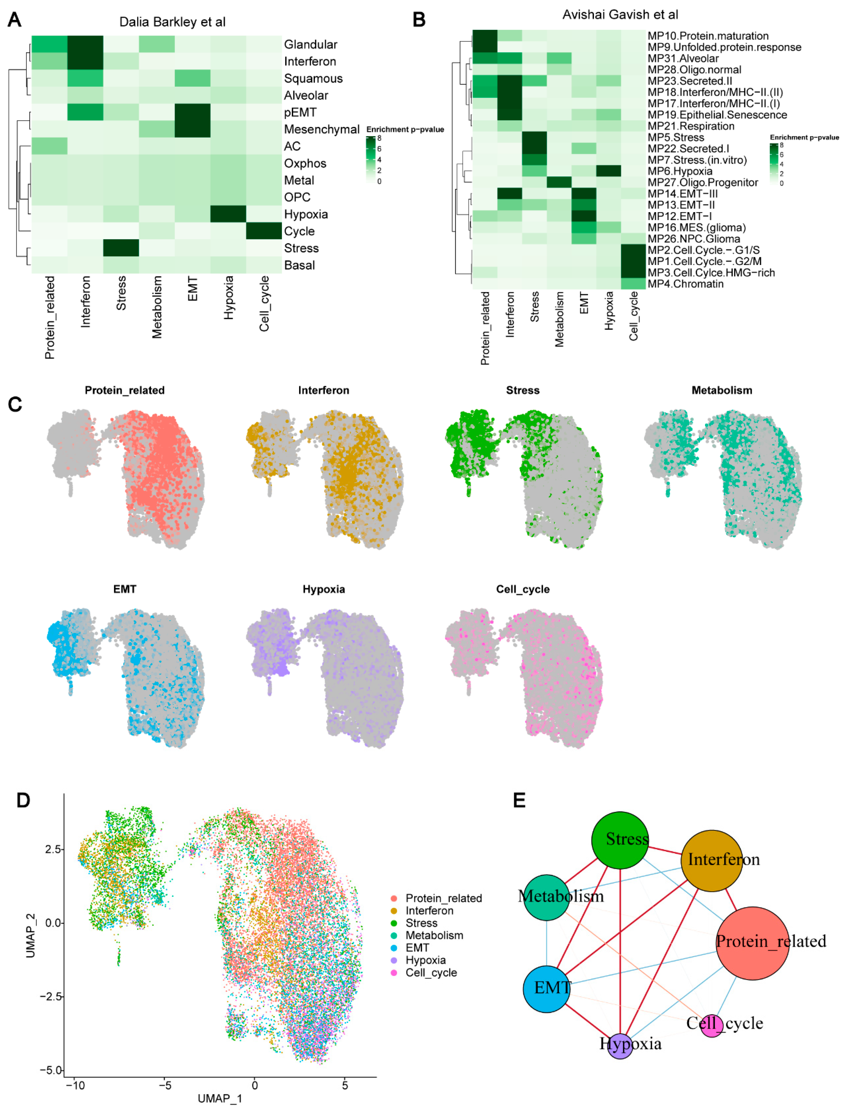 Figure 6H,I). Along this axis, the abundance of Mal_Interferon, Mal_EMT, and SPP1