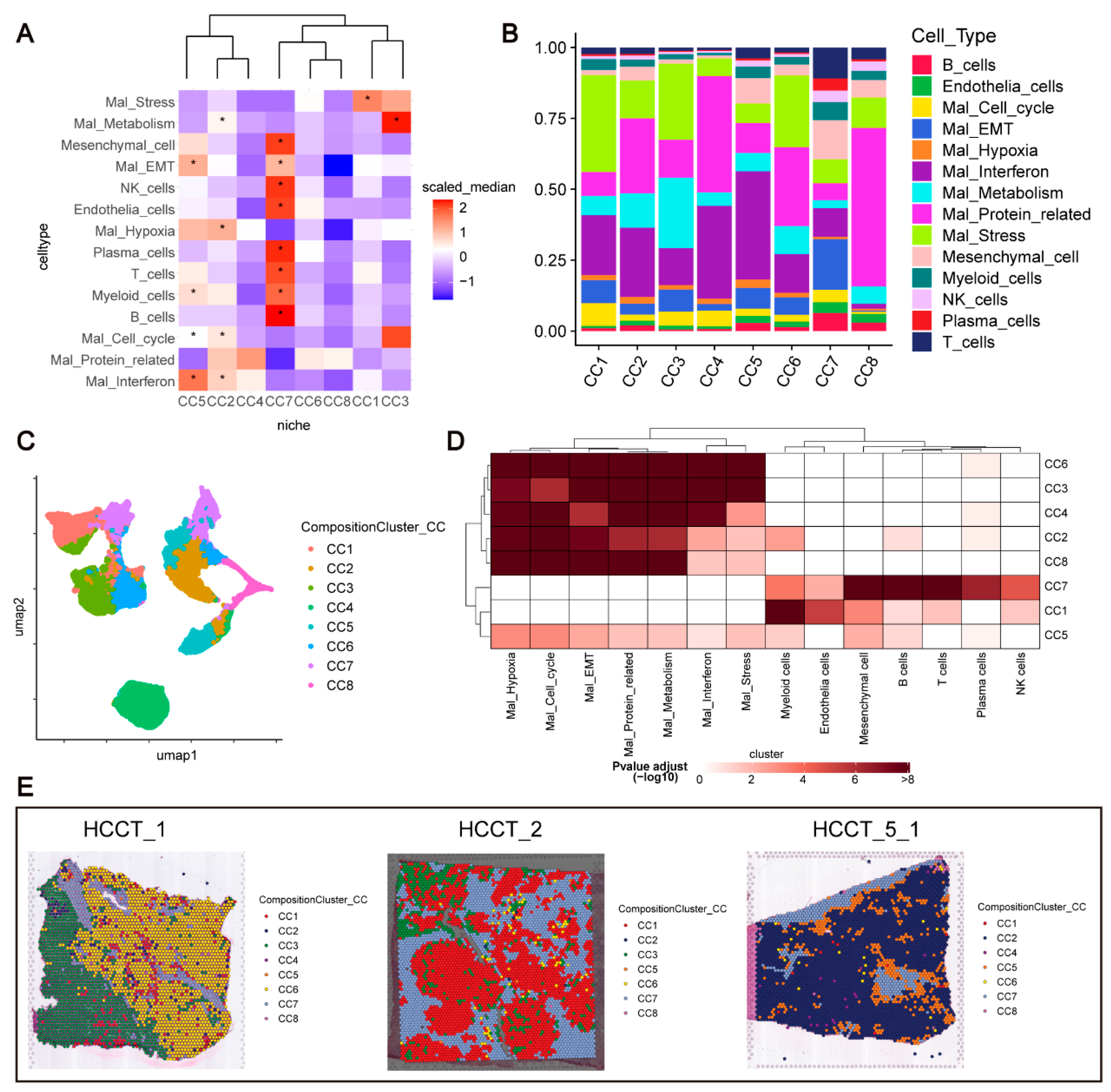 In summary, our findings suggest that CC5 functions as a transitional zone between the tumor and immune regions, exhibiting a distinct cellular composition and function, highlighting its potential role in tumor–immune interactions.