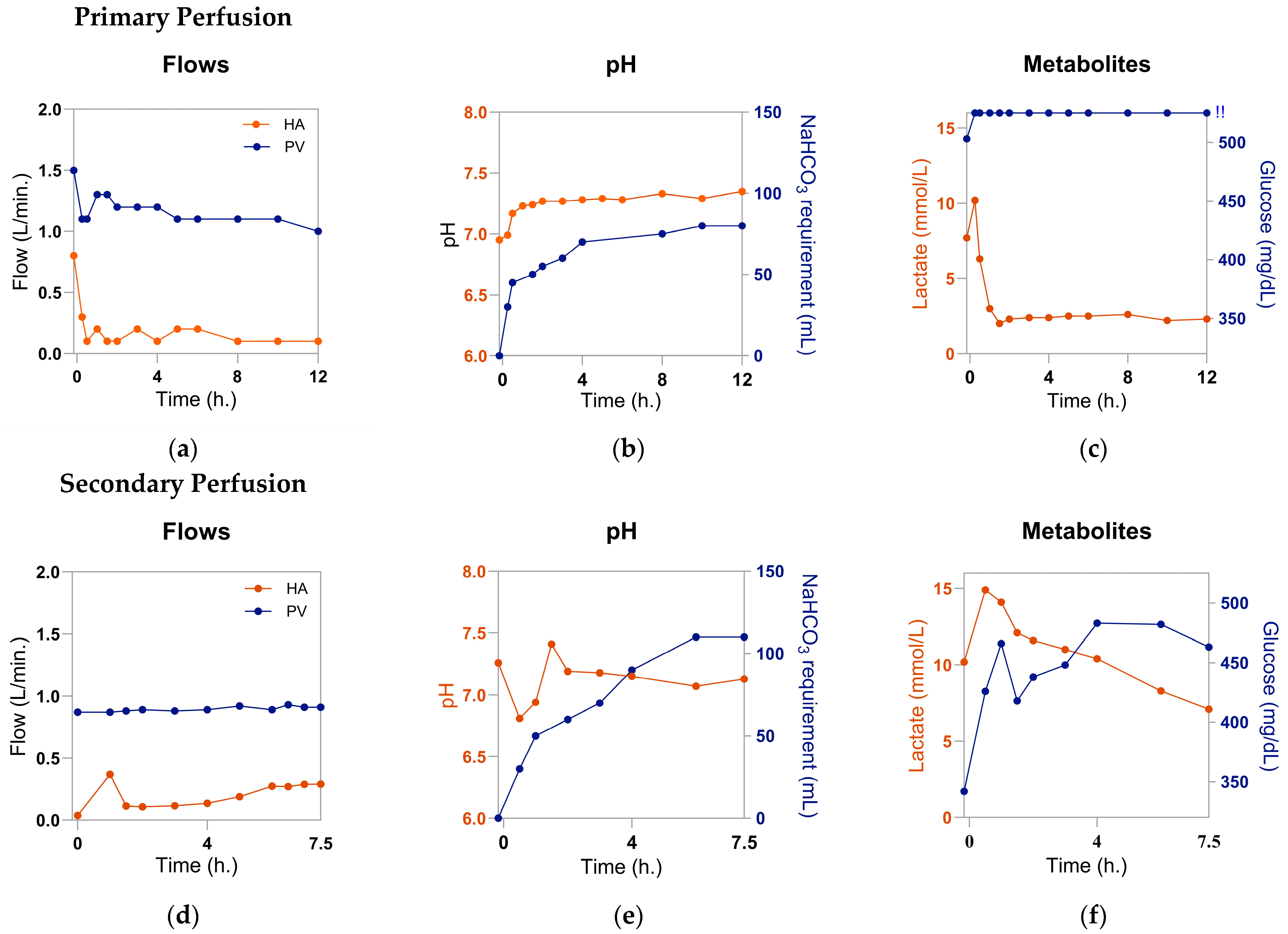 - Maeda, A.; Starkey, G.; Spano, S.; Chaba, A.; Eastwood, G.; Yoshino, O.; Perini, M.V.; Fink, M.; Bellomo, R.; Jones, R. Perfusate hemoglobin during normothermic liver machine perfusion as biomarker of early allograft dysfunction: A pilot study. Artif. Organs 2025, 49, 108–118. [Google Scholar] [CrossRef] [PubMed]
