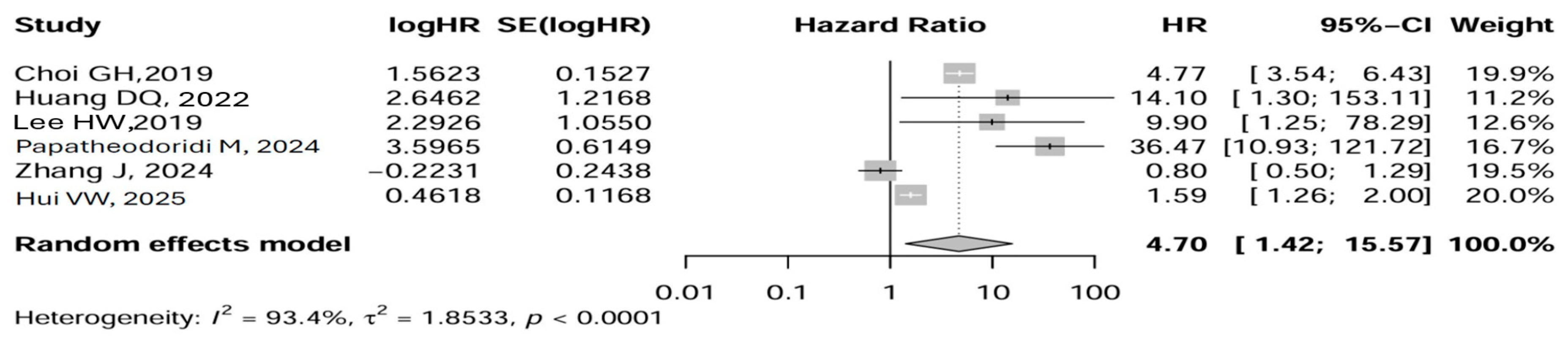 - Hui, V.W.; Wong, G.L.; Dai, J.; Tse, Y.K.; Lai, M.S.M.; Lai, J.C.T.; Chan, H.L.Y.; Wong, V.W.S.; Yip, T.C.F. Increased risk of hepatocellular carcinoma in HBeAg-negative indeterminate phase compared to HBeAg-negative chronic infection. Hepatology 2025, 83, 156–168. [Google Scholar] [CrossRef]