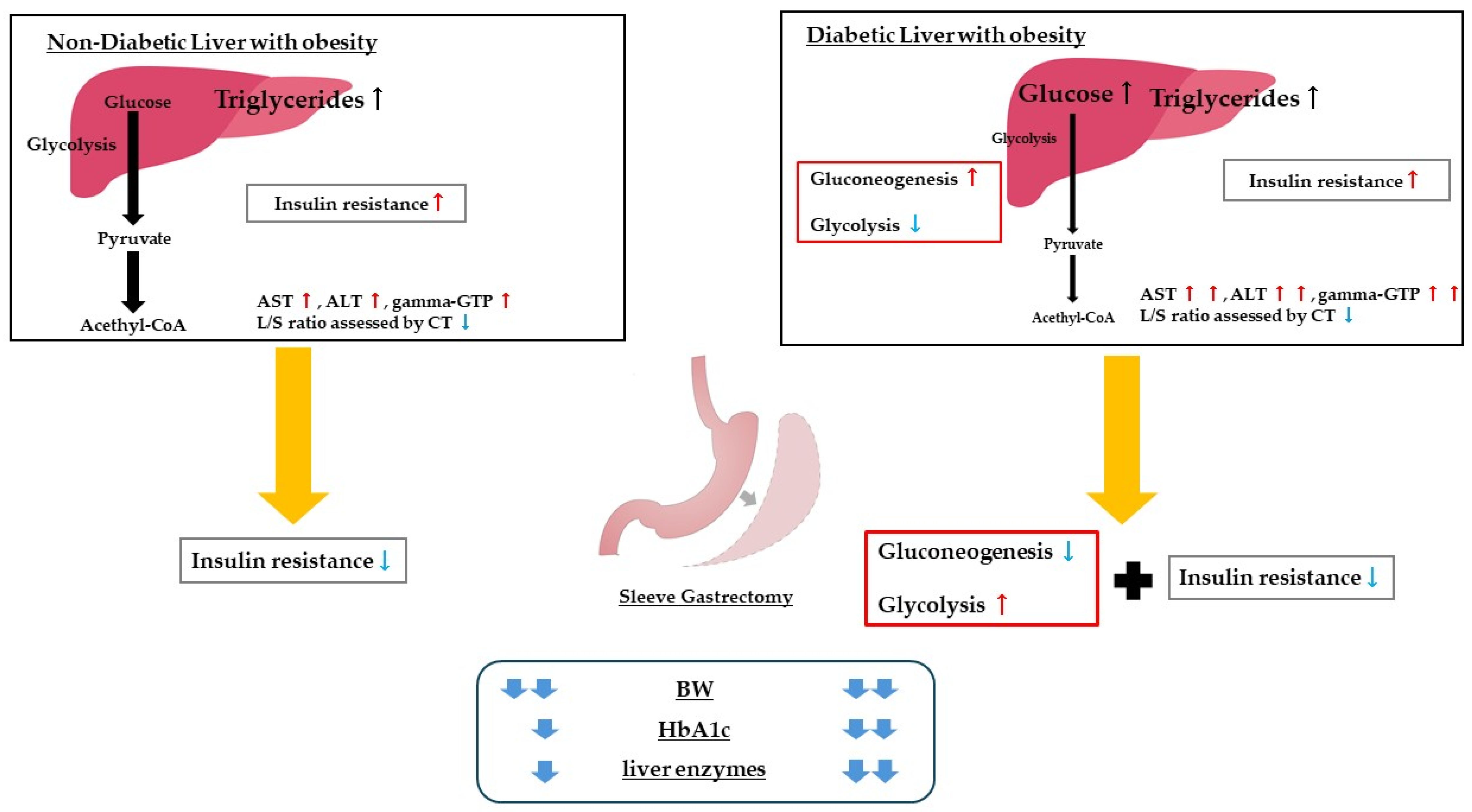 Ozeki Y, Masaki T, Imaishi N, Yonezu C, Morita M, Mori Y, Noguchi T, Miyamoto S, Yoshida Y, Gotoh K, et al. Association Among Liver Enzymes, Liver-to-Spleen Hounsfield Unit Ratio, and Glycemic Profiles After Sleeve Gastrectomy in Diabetic and Non-Diabetic Japanese Patients with Obesity: A Retrospective Pilot Study. Livers. 2026; 6(2):26. https://doi.org/10.3390/livers6020026