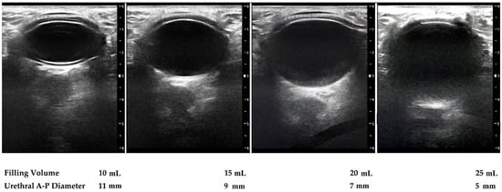 Additionally, ultrasound images performed after ATOMS adjustment at different times for serial postoperative filling in a case needing progressive filling up to 25 mL show that ATOMS filling elongates the transversal urethral diameter whereas it reduces the antero-posterior diameter (Figure 5).