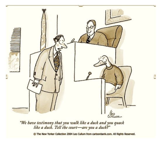 The Duck Principle: “But when I see a bird that quacks like a duck, walks like a duck, has feathers and webbed feet and associates with ducks, I’m certainly going to assume that he IS a duck.”—Emil Mazey Secretary-Treasurer UAW Labor leader 1946.