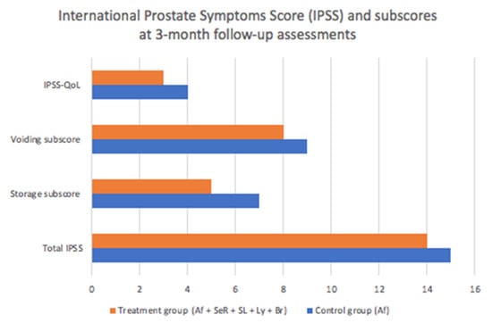 To the best of our knowledge, this represents the first study investigating clinical and functional outcomes of combination treatment with Alfuzosin and SeR + SL + Ly + Br in a real-life setting. Major strengths of the present study were the strict inclusion criteria, defined dosage, and extraction of phytotherapeutic and nutraceutical agents and use of validated symptom-scale scores during a mid-term follow-up period.