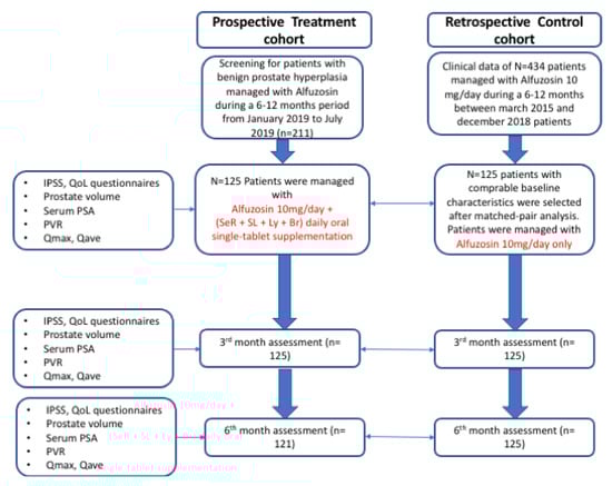 - Ryu, Y.W.; Lim, S.W.; Kim, J.H.; Ahn, S.H.; Choi, J.D. Comparison of Tamsulosin Plus Serenoa repens with Tamsulosin in the Treatment of Benign Prostatic Hyperplasia in Korean Men: 1-Year Randomized Open Label Study. Urol. Int. 2015, 94, 187–193. [Google Scholar] [CrossRef]