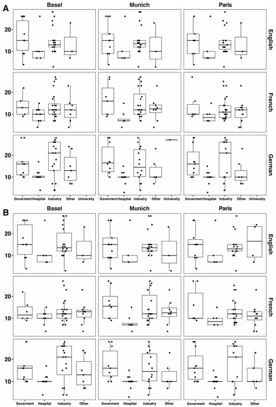Methods: We conducted a cross-sectional, observational study between 5 and 11 December 2022, evaluating Google search results for prostate cancer information across three European cities (Basel, Munich, and Paris) and three languages (English, German, and French) in both “Logged off” and “Anonymous” user modes. A total of 900 websites (450 per mode) were retrieved and classified as: (1) university, (2) hospital, (3) governmental/medical societies, (4) industrial/commercial/NGOs, or (5) other. Website quality was assessed using the validated QUEST, which evaluates authorship, attribution, conflicts of interest, currency, and evidence. Inclusion rates and QUEST scores were compared across languages, locations, and categories using Kruskal-Wallis tests with multiple comparison adjustments. A total of 900 websites (450 per mode) were retrieved in English, German, and French from searches conducted in Basel, Munich, and Paris. Websites were classified as: (1) university, (2) hospital, (3) governmental/medical societies, (4) industrial/commercial/NGOs, or (5) other. Quality was assessed using the QUEST, which evaluates authorship, attribution, conflicts of interest, currency, and evidence. Inclusion rates and QUEST scores were compared across languages, locations, and categories using Kruskal-Wallis tests with multiple comparison adjustments.