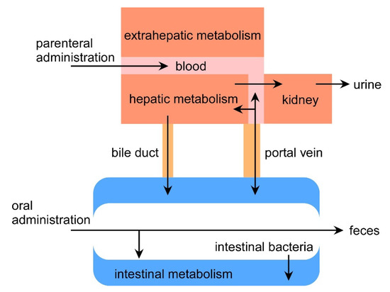A schematic diagram of drug metabolism in the human body is shown in