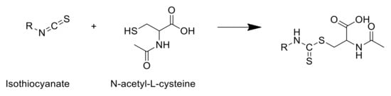 Derivatization reaction of isothiocyanates with N-acetyl-L-cysteine.