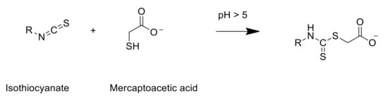 Derivatization of isothiocyanates with mercaptoacetic acid.