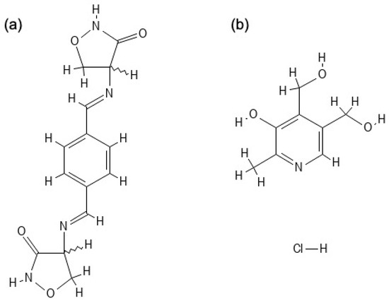- National Center for Biotechnology Information. Available online: https://pubchem.ncbi.nlm.nih.gov/compound/Pyridoxine-hydrochloride (accessed on 21 October 2021).