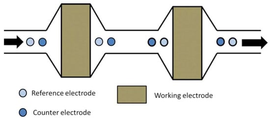 Amperometric sensors are not inherently selective [18]. Any electrode active species is detected [19,20] (Figure 3). In order to increase the selectivity, it is possible to operate with a filtering of the ion flux before it comes into contact with the electrode surface, for example by means of selectively permeable membranes that exclude the molecules based on their size or properties, such as lipophilic or hydrophobic membranes [21]. Another technique is the positioning of a layer of selective catalyst on the electrode surface [22].