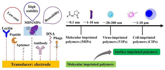 Various receptors for electrochemical biosensors using the Molecularly Imprinted Polymers (MIPs) concept (from ref. [31]).