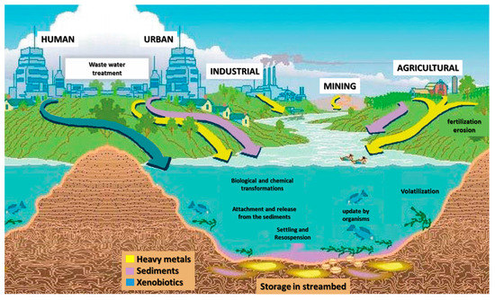 Connections and sources of xenobiotics that are poured into the environment as result of human activities.