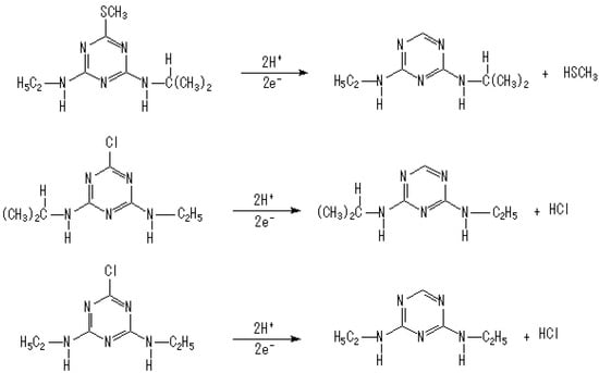 - LeBarom, H.; McFarland, J.; Burvide, O. (Eds.) The Triazine Herbicides 50 Years Revolutionizing Agriculture, 1st ed.; Elsevier: Amsterdam, The Netherlands, 2008. [Google Scholar]