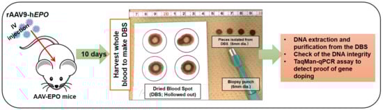 This pilot study was a small, limited-scope experiment that tested the adaptability of DBSs to the gene doping test. Mice injected with the rAAV9-hEPO vector showed significant increases in parameters reflecting hematopoiesis (RBCs, HBG, and HCT) in the whole blood, suggesting that an animal model mimicking gene doping could be established.