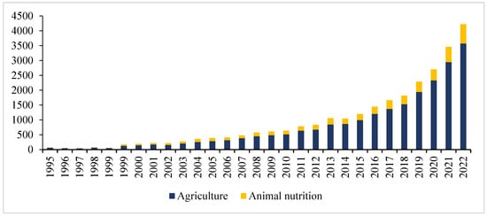 Number of publications on NIR spectroscopy (the search sources were Scopus, Web of Science databases, PubMed and the Google Scholar search engine 1995 to 2022 with key words “Agriculture” in combination with “NIR spectroscopy” and “animal nutrition” with “NIR spectroscopy”).