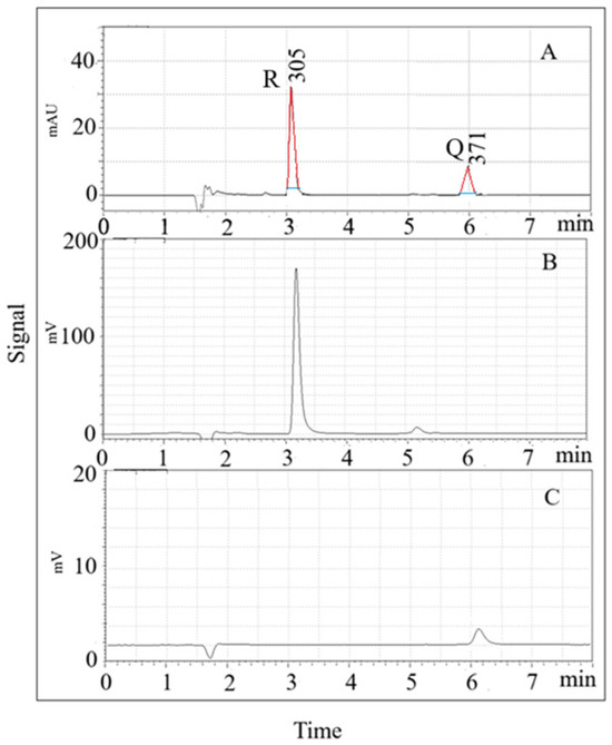 - Buiarelli, F.; Bernardini, F.; Di Filippo, P.; Riccardi, C.; Pomata, D.; Simonetti, G.; Risoluti, R. Extraction, Purification, and Determination by HPLC of Quercetin in Some Italian Wines. Food Anal. Methods 2018, 11, 3558–3562. [Google Scholar] [CrossRef]