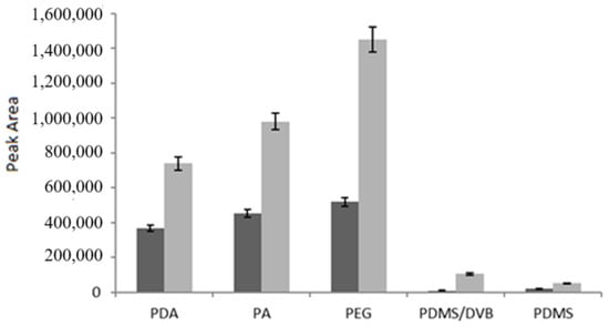 - Zambonin, C.G. Coupling solid-phase microextraction to liquid chromatography. A review. Anal. Bioanal. Chem. 2003, 375, 73–80. [Google Scholar] [CrossRef] [PubMed]