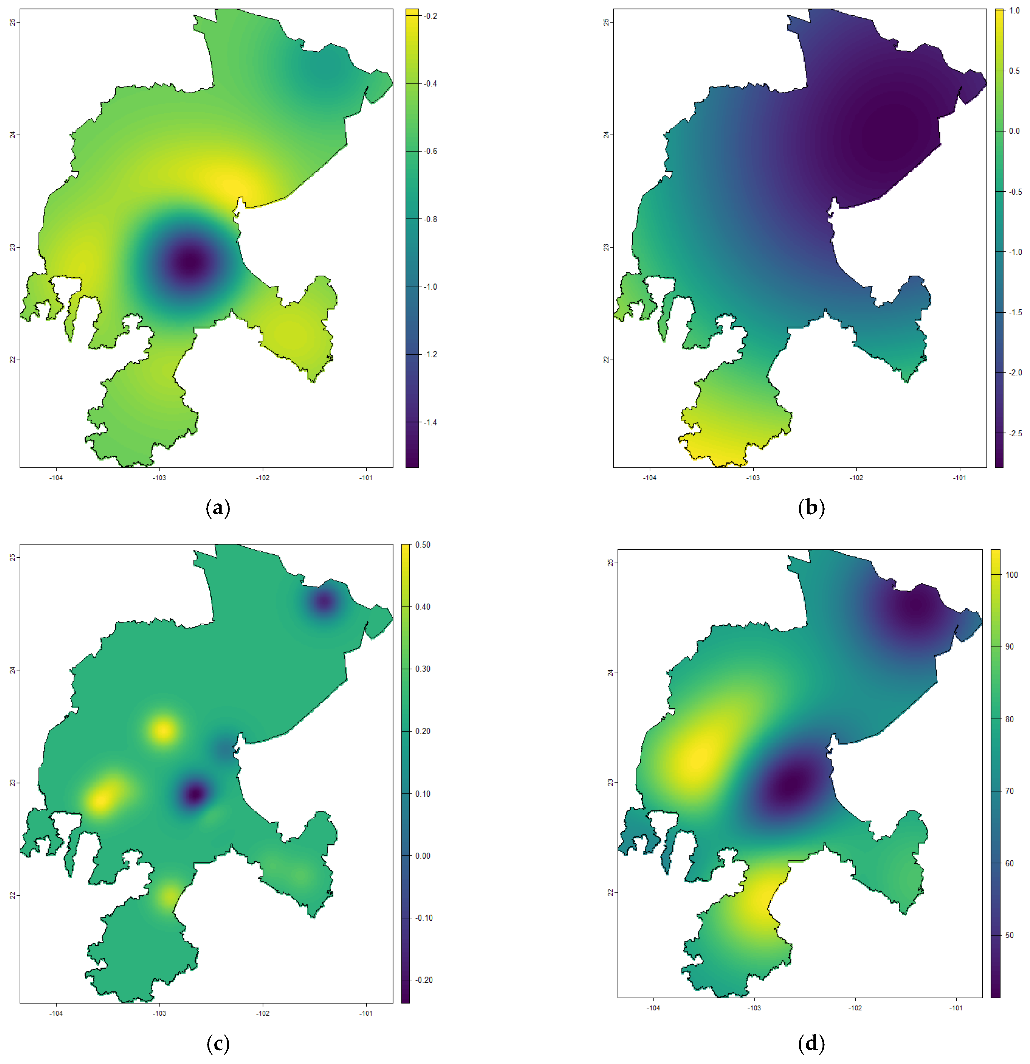 - Moraga, P. Geospatial Health Data: Modeling and Visualization with R-INLA and Shiny; Biostatistics Series; Chapman & Hall/CRC: New York, NY, USA, 2019. [Google Scholar]